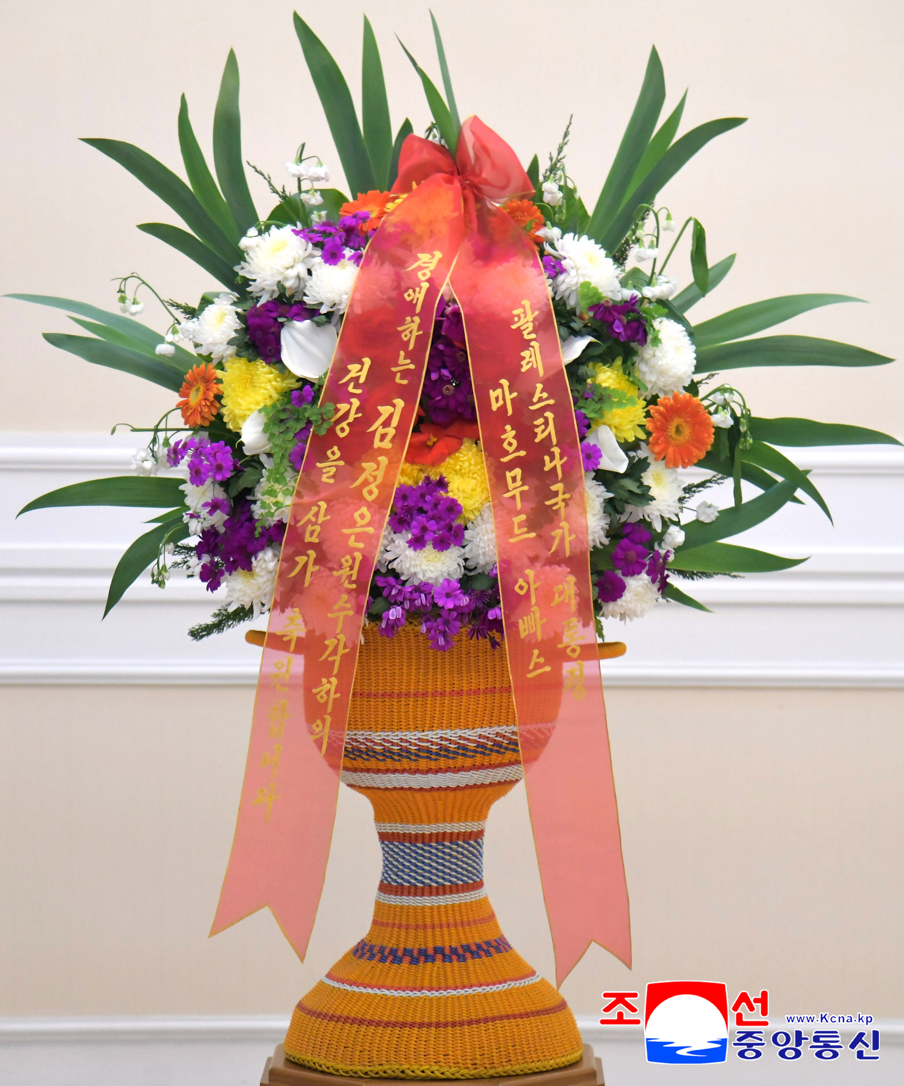 경애하는 김정은동지께 나이제리아련방공화국 대통령이 꽃바구니를 보내여왔다