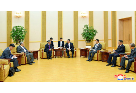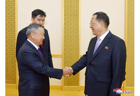 조선외무상 리용호동지는 13일 만수대의사당에서 의례방문하여온 잔다후긴 엔흐볼드 몽골대통령사무국장과 일행을 만나 담화를 하였다.(끝)