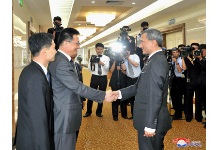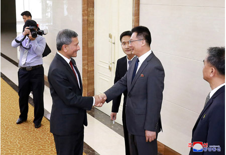 조선민주주의인민공화국과 싱가포르공화국 외무상들사이의 회담이 7일 만수대의사당에서 진행되였다.