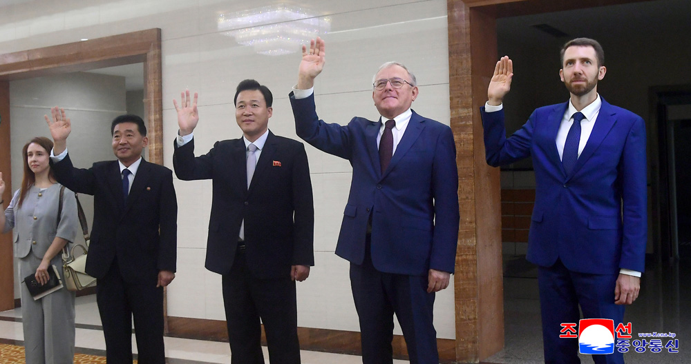 평양국제비행장에서 조선로씨야친선의원단 부위원장인 청년동맹중앙위원회 부위원장 김성일동지와 우리 나라 주재 로씨야련방 특명전권대사 알렉싼드르 마쩨고라동지가 전송하였다.(끝)