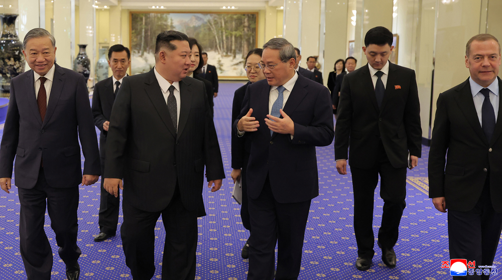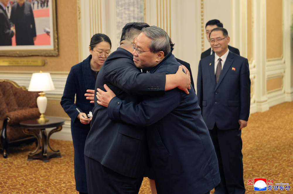 경애하는 김정은동지 께서 중화인민공화국 국무원 총리 리강동지를 접견하시였다