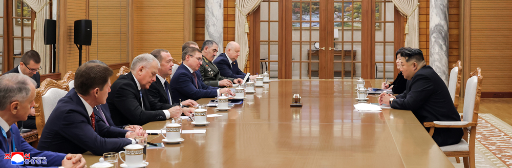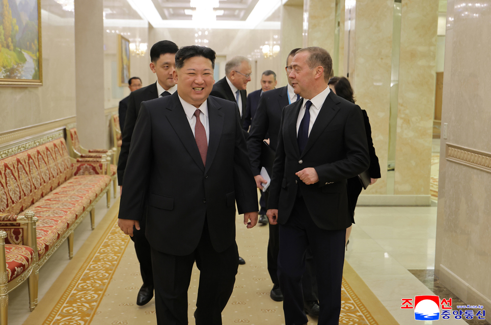 경애하는 김정은동지 께서 전로씨야정당 《통일로씨야》 위원장 드미뜨리 메드베제브동지를 접견하시였다