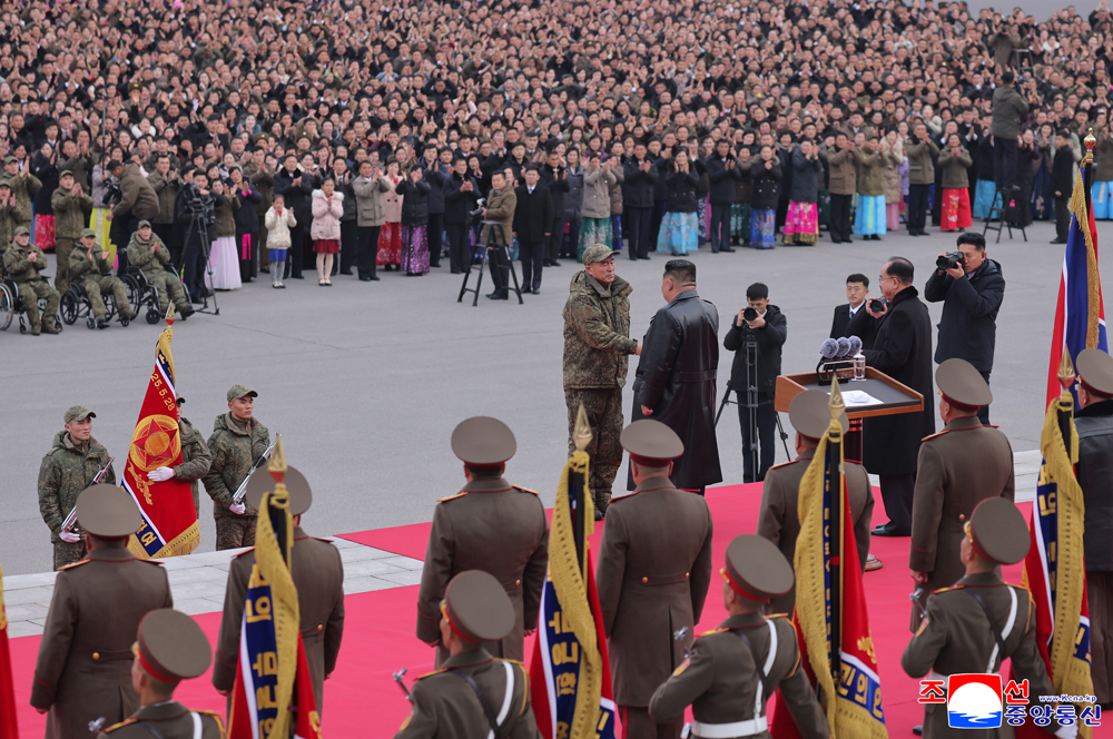 해외작전지역에서 당의 전투명령을 관철하고 귀국하는 조선인민군 공병부대 환영식 성대히 진행