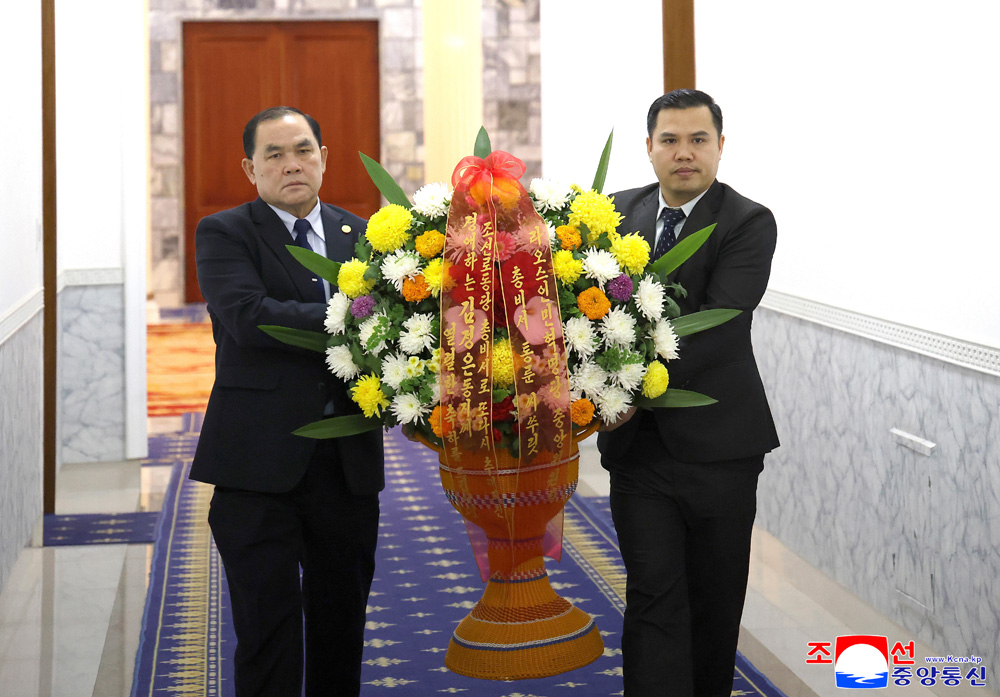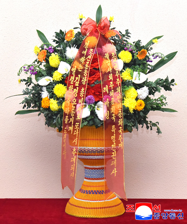 경애하는 김정은동지 께서 라오스인민혁명당 중앙위원회 총비서에게 꽃바구니를 보내시였다