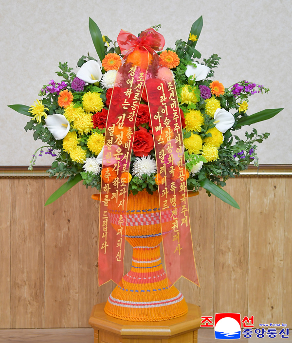 경애하는 김정은동지 께 로씨야의 정당들이 꽃바구니를 보내여왔다