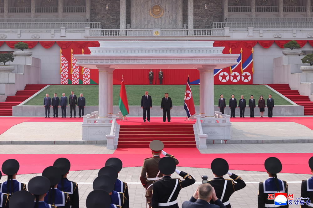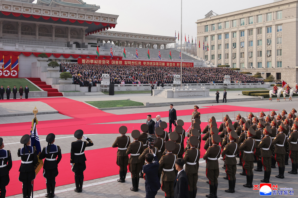 벨라루씨공화국 대통령 알렉싼드르 루까쉔꼬동지를 환영하는 의식 진행