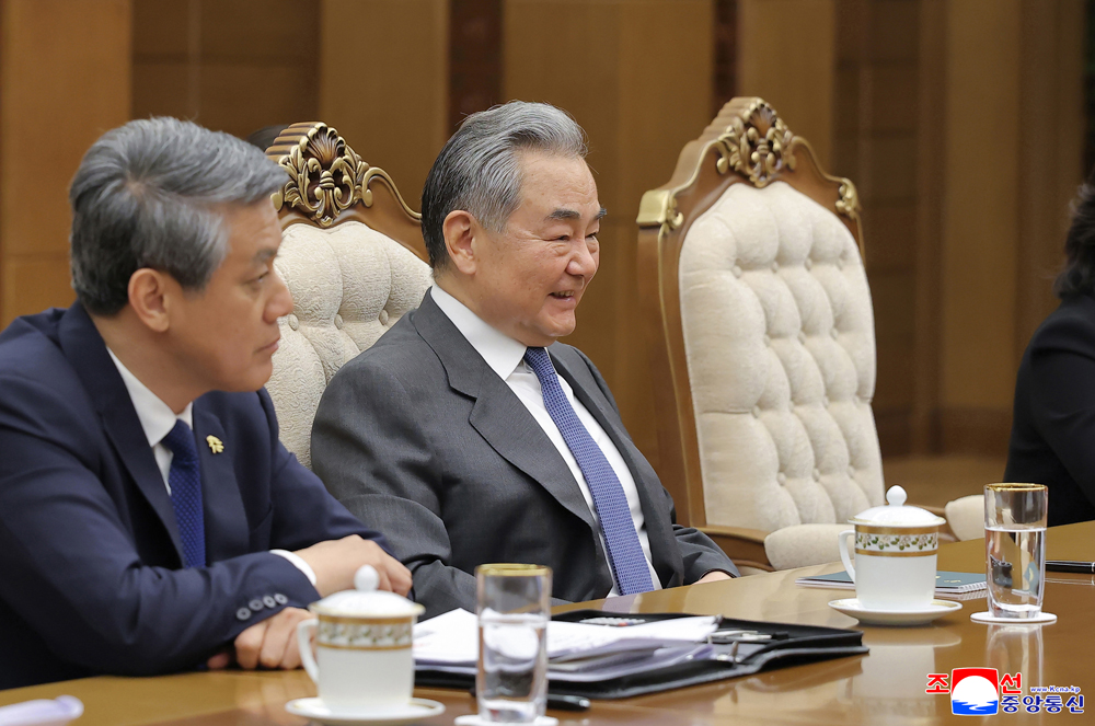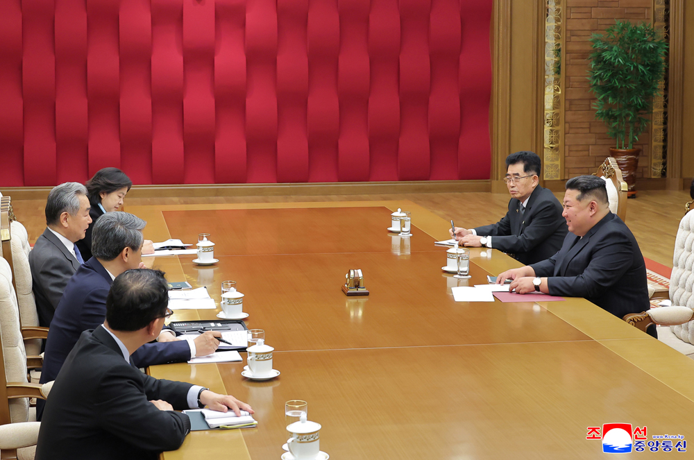 경애하는 김정은동지 께서 중화인민공화국 외교부장 왕의동지를 접견하시였다