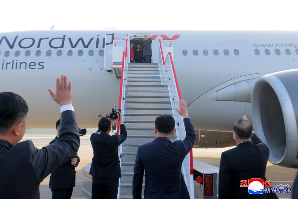벨라루씨공화국 대통령 알렉싼드르 루까쉔꼬동지 평양을 출발