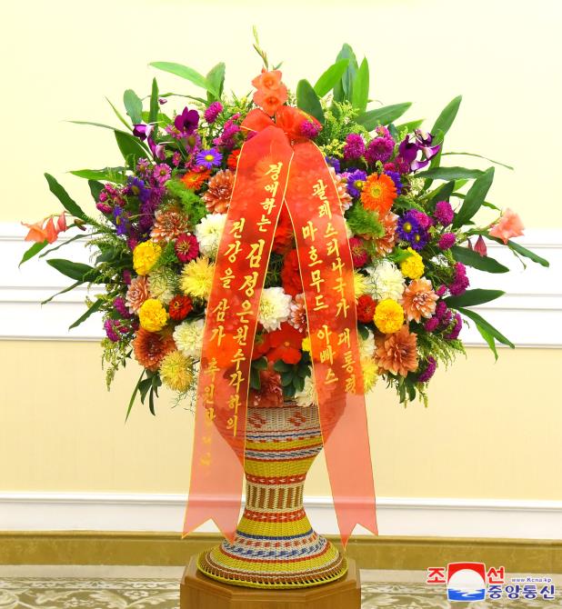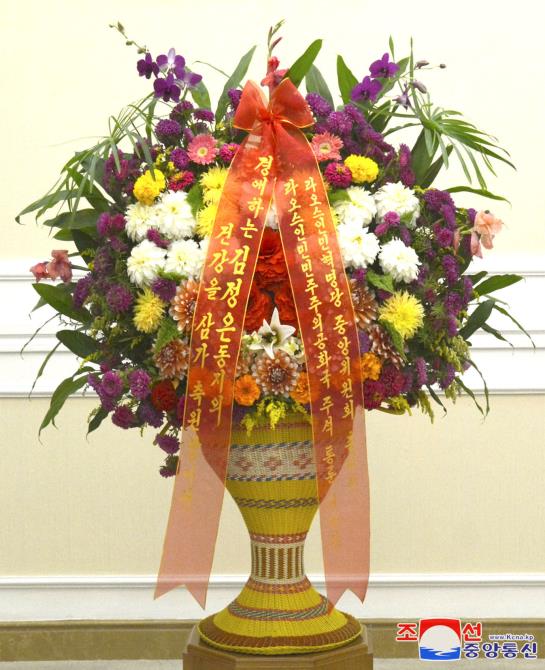 꽃바구니를 7일 해당 부문 일군에게 우리 나라 주재 라오스특명전권대사가 전달하였다.(끝)