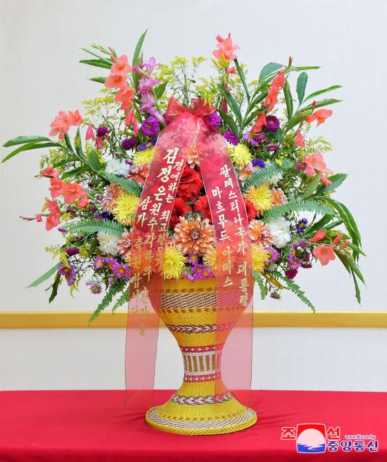 꽃바구니를 8일 우리 나라 주재 나이제리아림시대리대사가 해당 부문 일군에게 전달하였다.(끝)