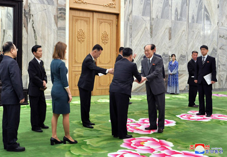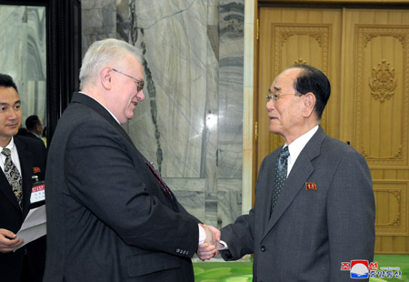 조선로동당 중앙위원회 정치국 상무위원회 위원이며 조선민주주의인민공화국 최고인민회의 상임위원회 위원장인 김영남동지는 19일 만수대의사당에서