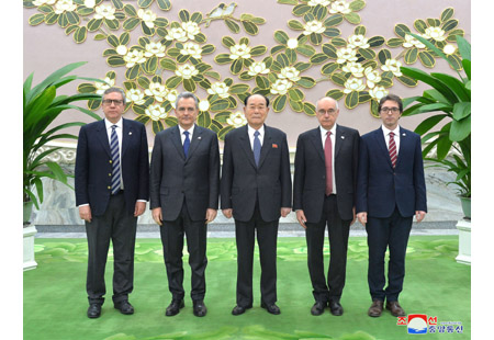 조선로동당 중앙위원회 정치국 상무위원회 위원이며 조선민주주의인민공화국 최고인민회의 상임위원회 위원장인 김영남동지는 14일 만수대의사당에서 의례방문하여온 임빨리아쪼 마르꼬 이딸리아인도주의협조단체《싼떼쥐디오》공동체 위원장과 일행을 만나 담화를 하였다.(끝)