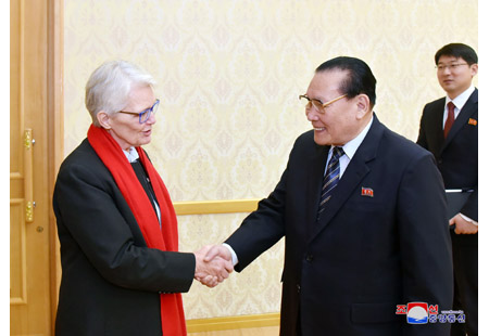 최고인민회의 상임위원회 부위원장 김영대동지는 19일 만수대의사당에서 의례방문하여온 에바 마르가레타 왈스트룀 스웨리예적십자사 위원장과 일행을 만나 담화를 하였다.(끝)