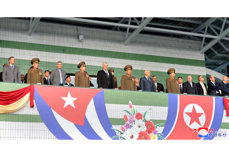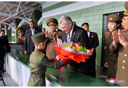 조선인민군 총정치국장 륙군대장 김수길동지가 미겔 마리오 디아스 까넬 베르무데스동지를 맞이하고 동행하였다.
