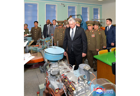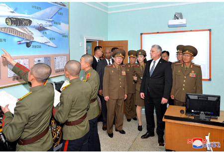 꾸바공화국 국가리사회 위원장 겸 내각수상 미겔 마리오 디아스 까넬 베르무데스동지가 5일 만경대혁명학원을 참관하였다.