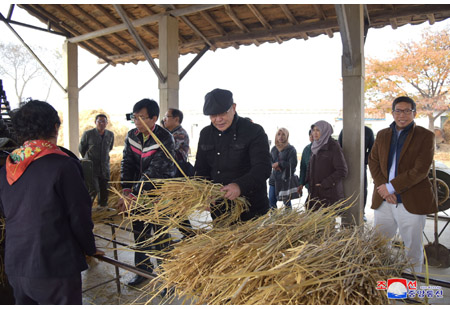 레 바 빙 주조 윁남사회주의공화국 특명전권대사와 대사관 성원들이 8일 황해북도 사리원시 조선윁남친선 미곡협동농장을 참관하였다.