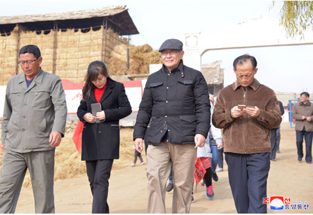 대사관 성원들은 농장에 깃든 절세위인들의 령도업적에 대한 해설을 들으며 사회주의문화농촌의 본보기답게 변모된 농장의 문화주택들과 유치원 등을 돌아보았다.