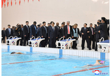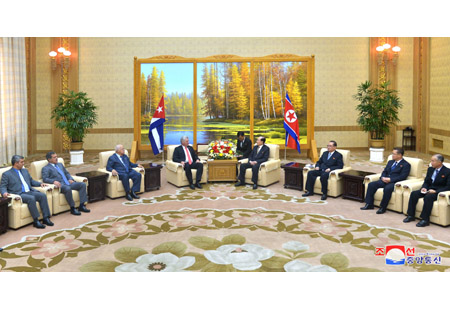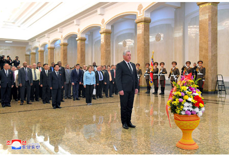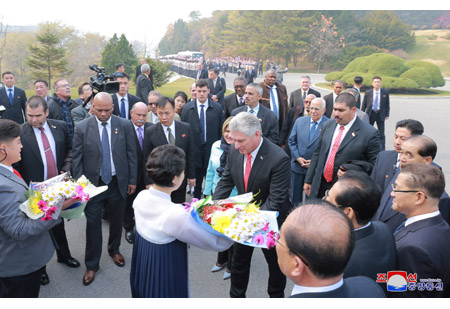 꾸바공화국 국가리사회 위원장 겸 내각수상 미겔 마리오 디아스 까넬 베르무데스동지와 리스 꾸에스따 뻬라싸녀사가 5일