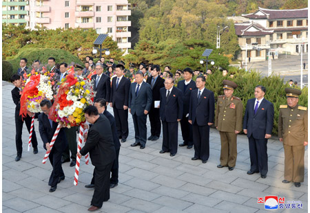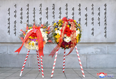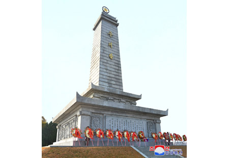 중국인민지원군 조선전선참전 68돐에 즈음하여 25일 우의탑에 화환들이 진정되였다.