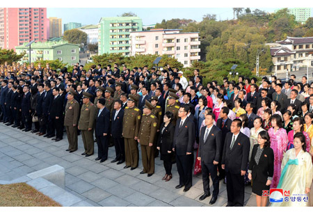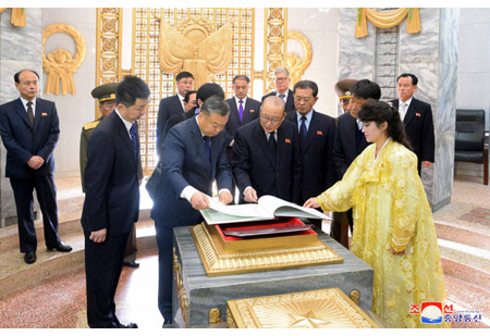 화환진정에는 최고인민회의 상임위원회 부위원장 양형섭동지, 조선로동당 중앙위원회 부부장 리창근동지, 인민무력성 부상 륙군중장 강순남동지, 외무성 부상 리길성동지, 조중친선협회 위원장인 대외문화련락위원회 부위원장 박경일동지, 관계부문 일군들, 시내 근로자들이 참가하였다.
