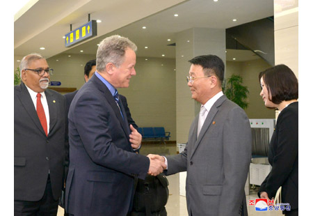 데이비드 말드러우 비슬리 세계식량계획 집행국장과 일행이 8일 평양에 도착하였다.
