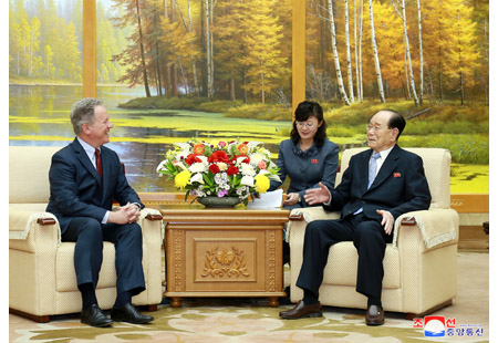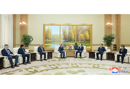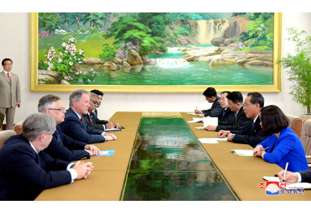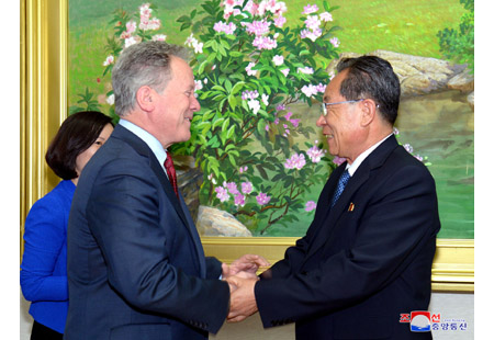 내각부총리 겸 농업상 고인호동지는 10일 인민문화궁전에서 의례방문하여온 데이비드 말드러우 비슬리 세계식량계획 집행국장과 일행을 만나 담화를 하였다.(끝)