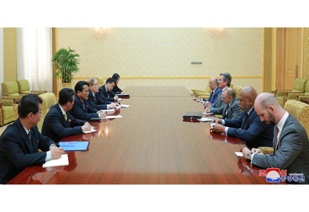 최고인민회의 부의장 안동춘동지와 페르난두 꼴로르 브라질국회 상원 외교 및 국방위원회 위원장사이의 회담이 27일 만수대의사당에서 진행되였다.