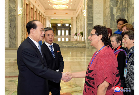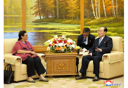 조선로동당 중앙위원회 정치국 상무위원회 위원이며 조선민주주의인민공화국 최고인민회의 상임위원회 위원장인 김영남동지는 23일 만수대의사당에서 의례방문하여온 로레나 뻬냐 국제민주녀성련맹 위원장과 련맹 지도부성원들을 만나 담화를 하였다.(끝)