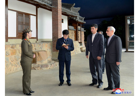 조선민주주의인민공화국과 이란이슬람공화국사이의 외교관계설정 45돐에 즈음하여 주조 이란이슬람공화국대사관 성원들이 23일
