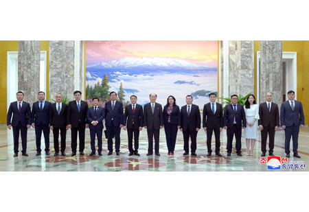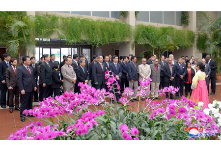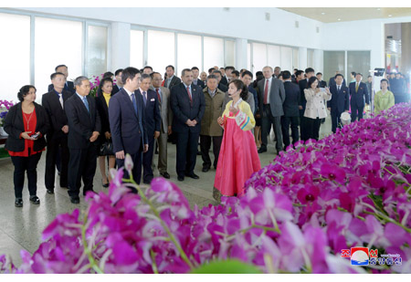 선물을 조선로동당 중앙위원회 정치국 위원인 조선로동당 중앙위원회 부위원장 리수용동지에게 13일 태양절에 즈음하여 조선을 방문하고있는 민주꽁고공산당대표단 단장인 씰배르 보스와 이쎄꼼베 총비서가 전달하였다.(끝)