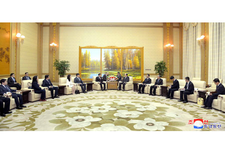 조선로동당 중앙위원회 정치국 상무위원회 위원이며 조선민주주의인민공화국 최고인민회의 상임위원회 위원장인 김영남동지는 14일 만수대의사당에서 의례방문하여온 드. 아마르바야쓰갈란 총비서를 단장으로 하는 몽골인민당대표단을 만나 담화를 하였다.(끝)
