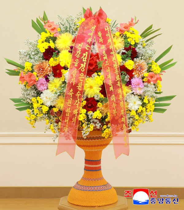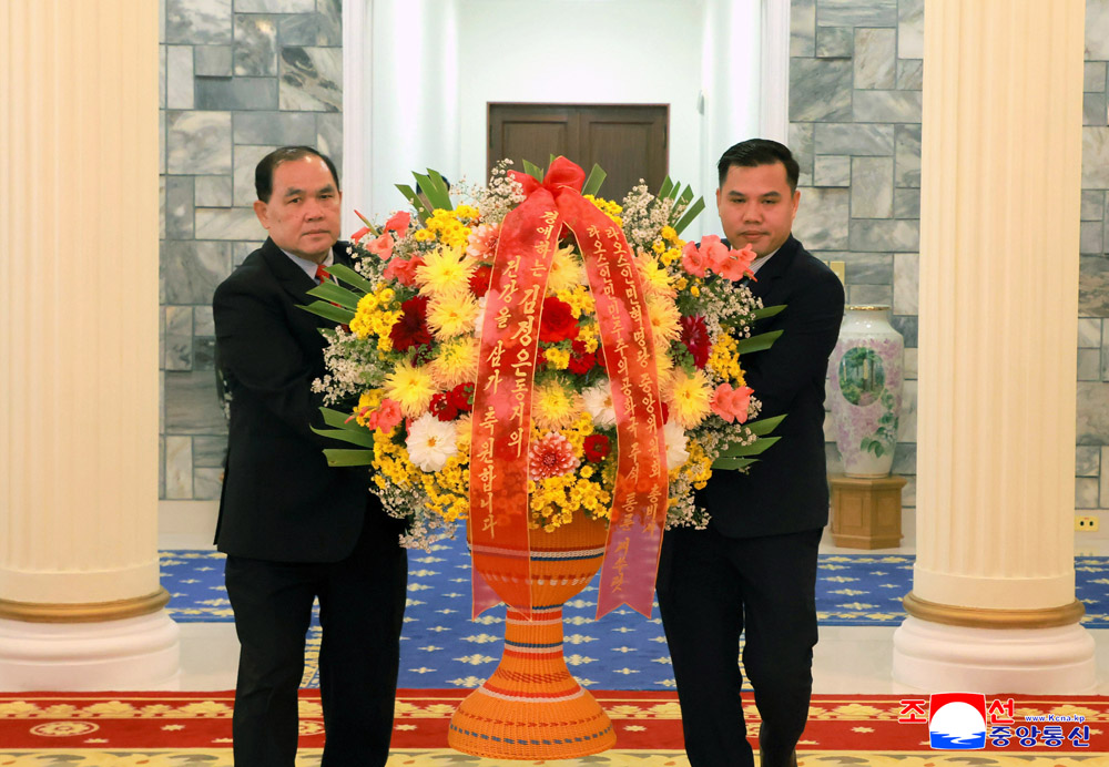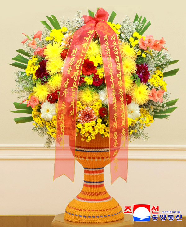 꽃바구니를 우리 나라 주재 라오스인민민주주의공화국 특명전권대사가 5일 해당 부문 일군에게 전달하였다.(끝)