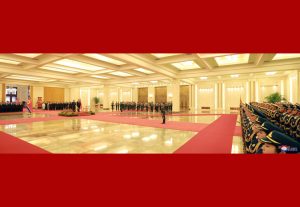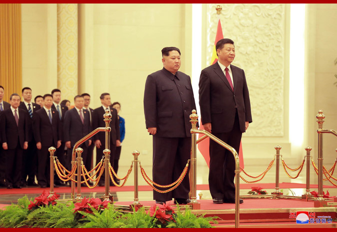 When respected Supreme Leader Kim Jong Un, together with his wife arrived at the Great Hall of the People, Xi Jinping, general secretary of the Central Committee of the Communist Party of China, president of the PRC and chairman of the Central Military Commission, and his wife Peng Liyuan warmly greeted them.