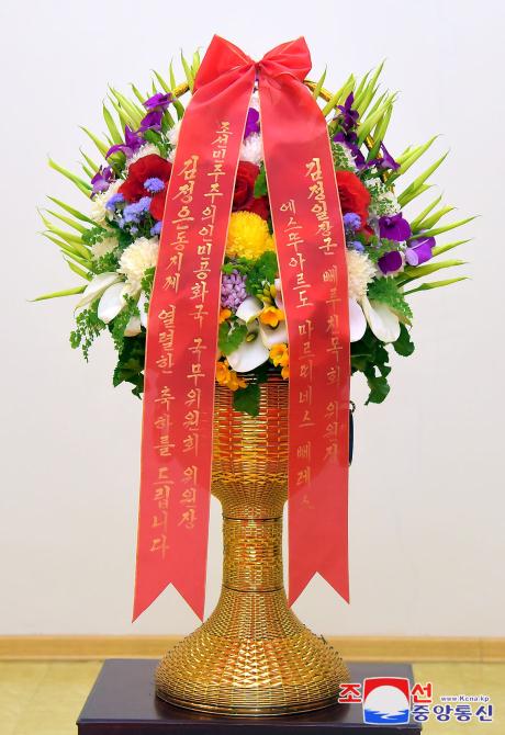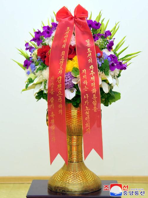 Supreme Leader Kim Jong Un received floral baskets from foreign organizations and personages on February 14 on the occasion of the Day of the Shining Star, the birth anniversary of Chairman Kim Jong Il.