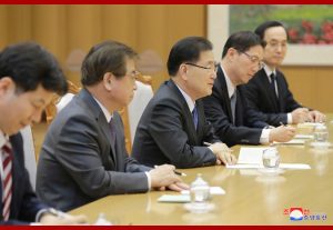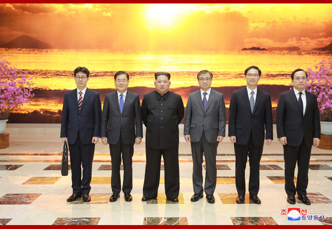 Present there were Jong Ui Yong, chief of the State Security Office of Chongwadae who is the special envoy of President Moon Jae In; So Hun, director of the National Intelligence Service; Chon Hae Song, vice-minister of Unification; Kim Sang Gyun, vice-director of the National Intelligence Service; and Yun Kon Yong, chief of the Office of State Affairs Situation of Chongwadae.