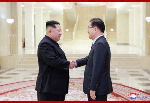 Shaking hands of the special envoy and his party one by one, the respected Supreme Leader warmly welcomed them on their visit to Pyongyang.