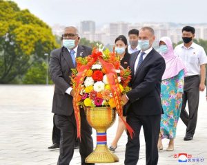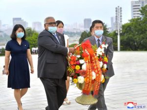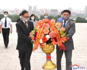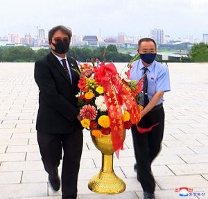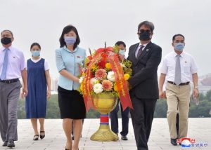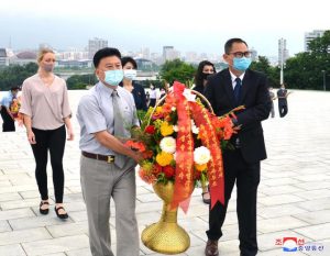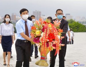 Staff members of UN Resident Coordinator Office and Missions of UNDP, UNICEF, UNFPA, FAO, WFP and WHO here visited the statues of President Kim Il Sung and Chairman Kim Jong Il on Mansu Hill on July 7 on the occasion of the 26th anniversary of the demise of the President.