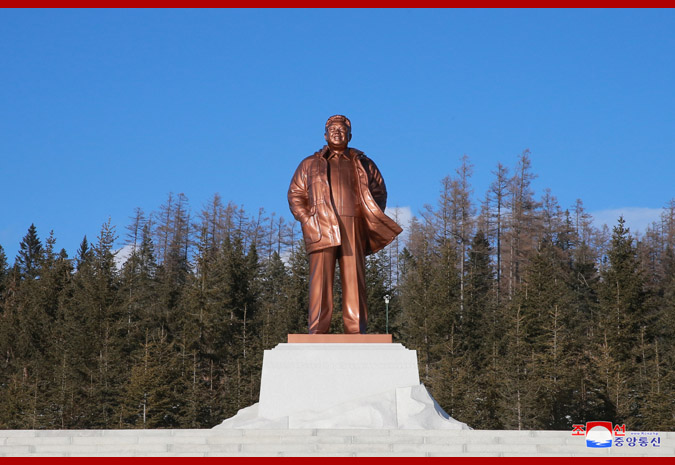 The respected Supreme Leader paid tribute to leader Kim Jong Il before his statue in Samjiyon County.