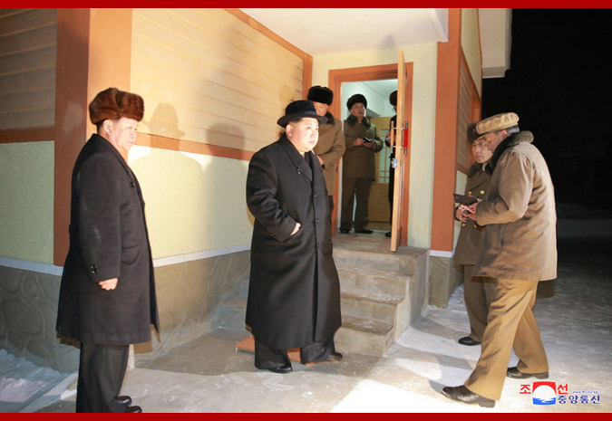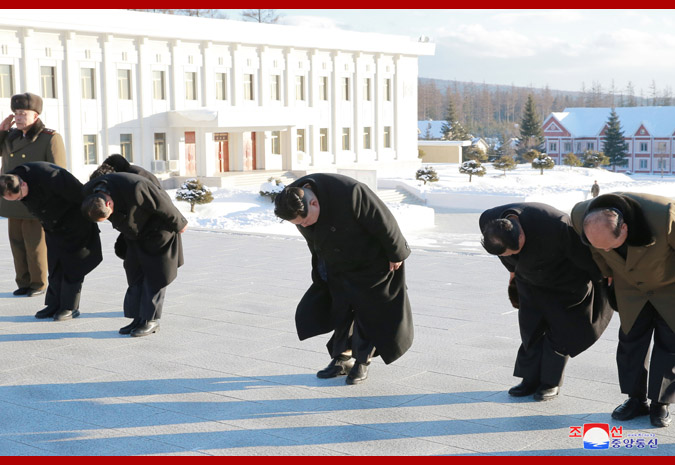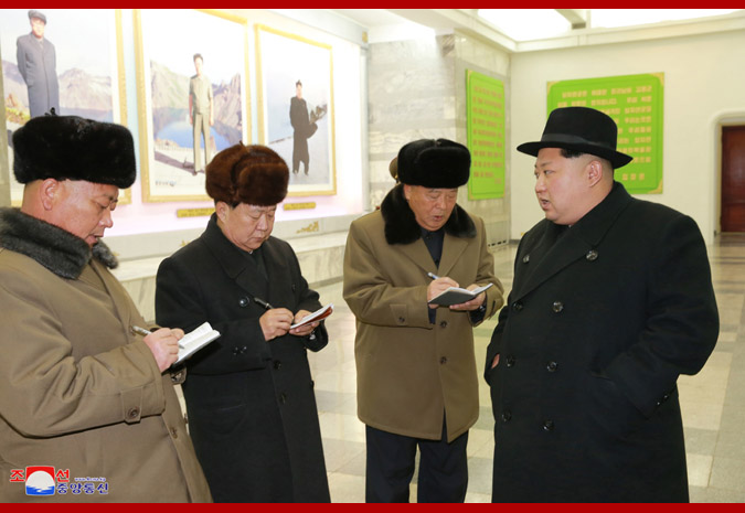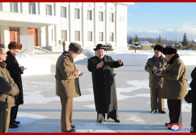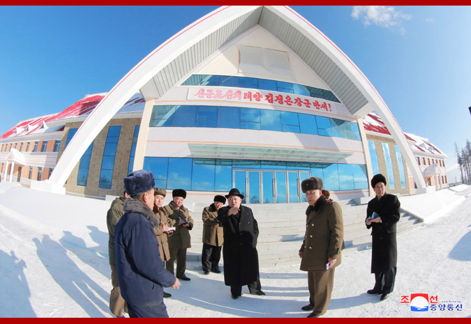 The first leg of his field guidance was the remodeled Kimilsungism-Kimjongilism Study Hall in Samjiyon County.