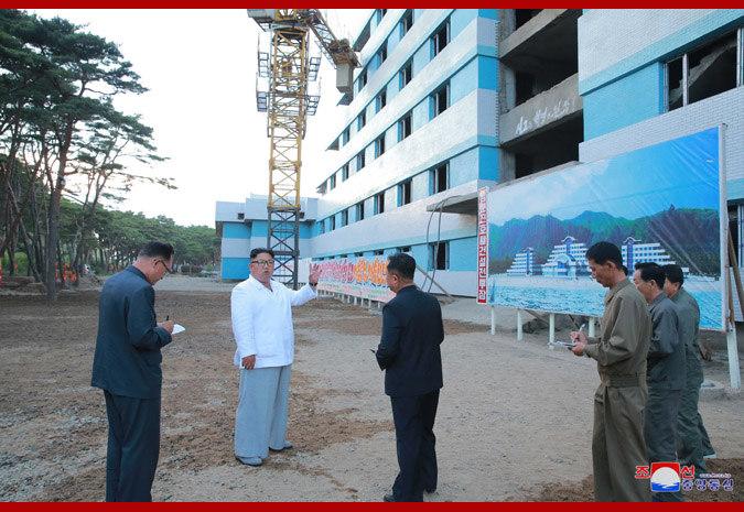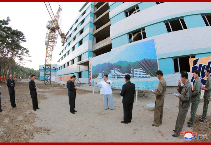 The respected Supreme Leader Kim Jong Un inspected the Yombunjin Hotel under construction.