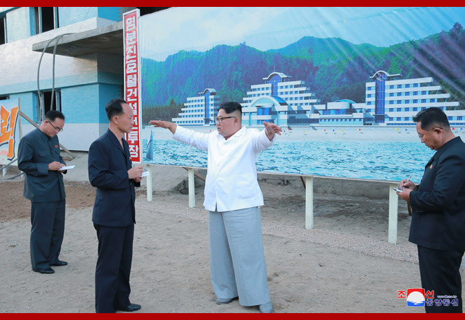 He indicated the construction orientation and ways to turn the Yombunjin area into a wonderful resort for the people, saying that the Party will take a step for supplying funds and materials and the North Hamgyong Provincial Party Committee should encourage the officials and builders of the province to the campaign for implementing the behests of the leader so as to build the hotel by Oct. 10 next year and make a report of loyalty to Kim Jong Il.
