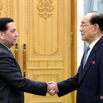 Kim Yong Nam, member of the Presidium of the Political Bureau of the Central Committee of the Workers’ Party of Korea and president of the Presidium of the Supreme People’s Assembly of the Democratic People’s Republic of Korea, met and had a talk with a delegation of the Syria Baath Children Organization led by chairman Muhamad Ezat Arabi Katbi who paid a courtesy call on him at the Mansudae Assembly Hall on Wednesday.