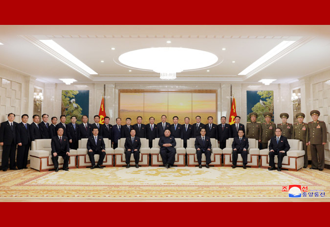 Kim Jong Un, chairman of the Workers’ Party of Korea(WPK) and chairman of the State Affairs Commission of the Democratic People’s Republic of Korea, met the newly-elected members of the leadership bodies of the Party and state at the headquarters building of the Party Central Committee on April 12, and had a photo session with them.