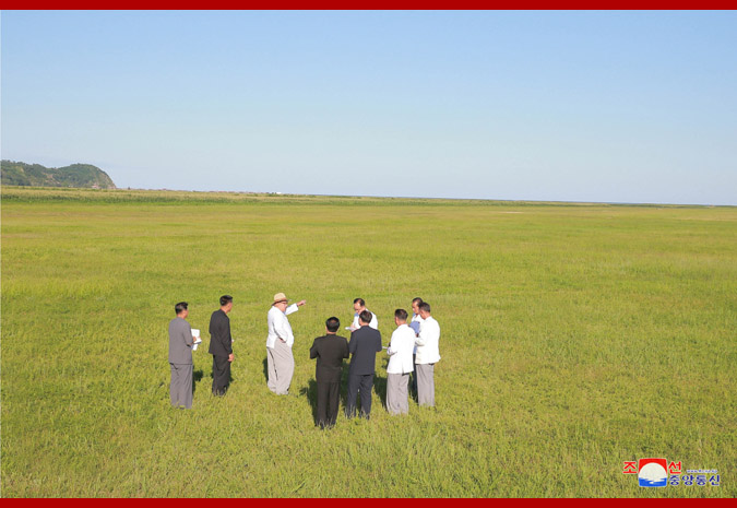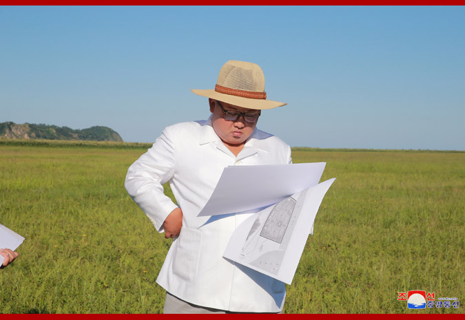 The respected Supreme Leader Kim Jong Un gave field guidance to the preparations for the construction of the Onpho greenhouse farm in Kyongsong County of North Hamgyong Province.