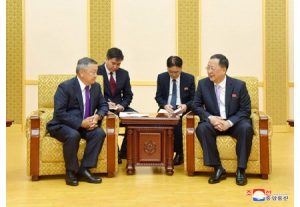 DPRK foreign minister Ri Yong Ho met and had a talk with Zandaakhuu Enkhbold, head of the Mongolian presidential secretariat, and his party who paid a courtesy call on him at the Mansudae Assembly Hall on Monday.