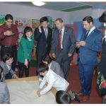 Being briefed on the fact that the education at the college was put on a highly scientific, IT and modern basis, the guests made rounds of the educational and scientific exhibition, the primary school teaching method rehearsal room, etc.