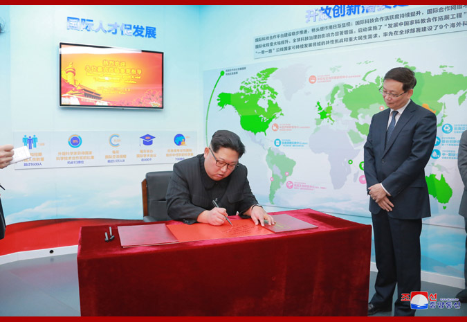 He made the following entry in the visitors’ book: We can grasp the mightiness of China, a great neighboring country. More excellent scientific successes will be achieved under the wise leadership of the Communist Party of China. Kim Jong Un on March 27, 2018.