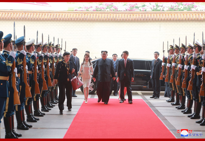 A ceremony for welcoming Kim Jong Un‘s visit to China took place with splendor at the Great Hall of the People.