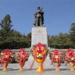 Written on the ribbons of the floral baskets were letters “Martyrs of the Chinese People’s Volunteers Will Be Immortal.”