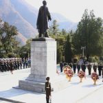 Amid the playing of the wreath-laying music, a floral basket in the name of the Supreme Leader of the Party, State and Armed Forces of the DPRK and floral baskets in the names of the Central Committee of the WPK, the Central Military Commission of the WPK, the State Affairs Commission of the DPRK, the Presidium of the Supreme People’s Assembly of the DPRK, the Cabinet of the DPRK and the KPA were laid at the monument to the CPV martyrs.